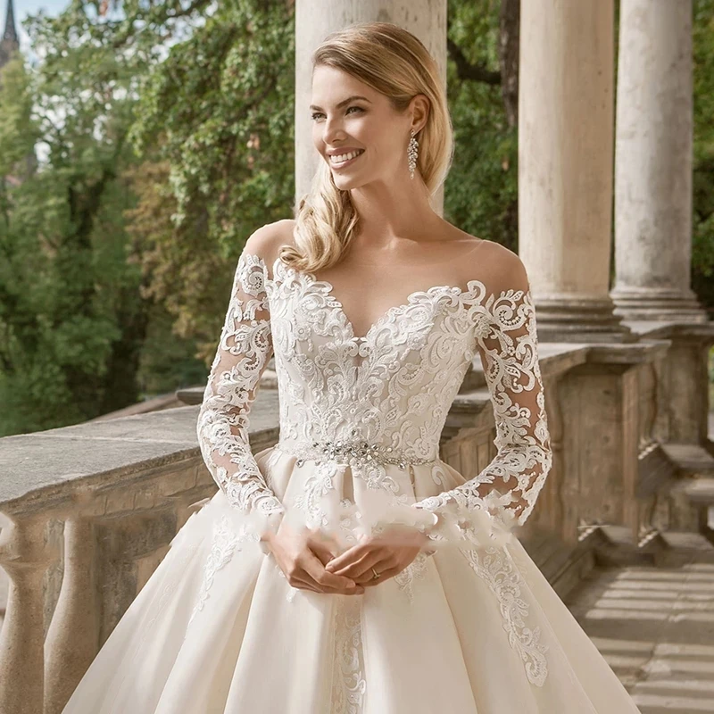 Потрясающее Свадебное Платье HERBURNL с v-образным вырезом и длинным рукавом... US $753,64