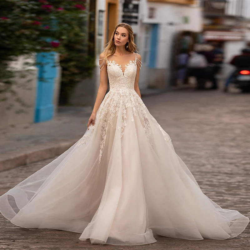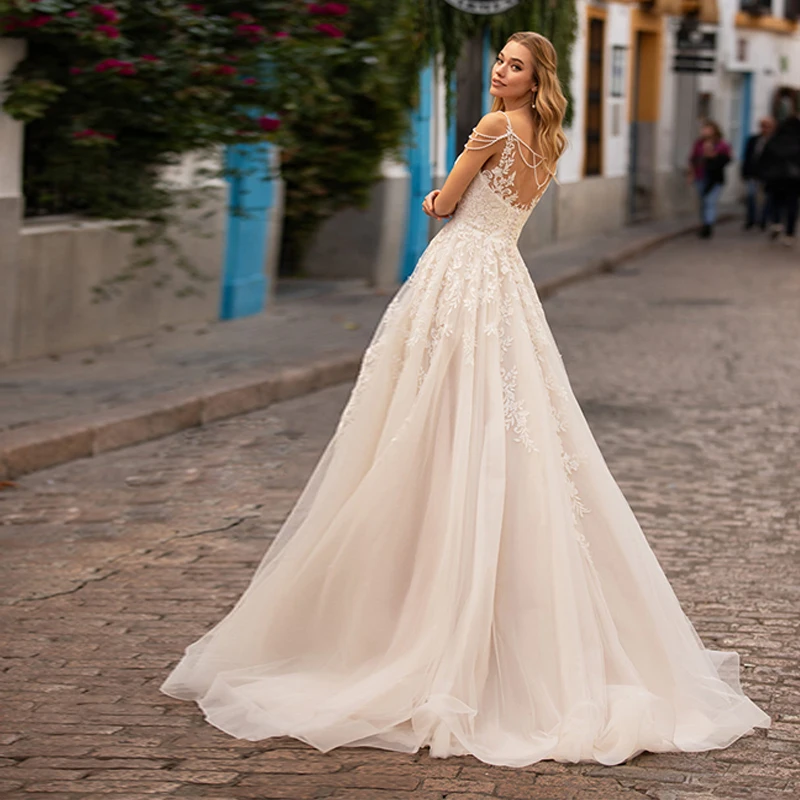 Роскошное Свадебное платье HERBURNL без рукавов, тюль с бисером, кружевное Тюлевое Элегантное свадебное платье, свадебное платье