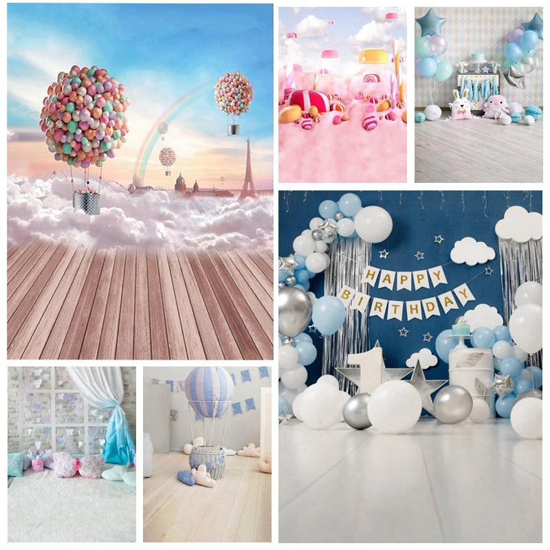 Виниловый фон для фотосъемки голубые воздушные шары часы в виде соб...