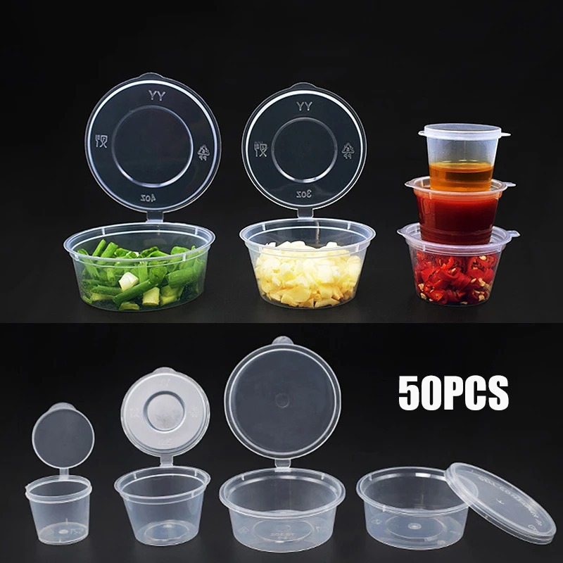 Пластиковые контейнеры для соуса на вынос, пищевая коробка с навесными крышками, коробка для Пигментных красок, одноразовая Палетка, 50 шт., 253040 мл