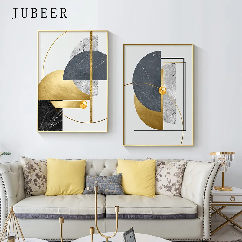 Современная Золотая абстрактная Геометрическая стена, холст, картина на стену, Золотая Настенная картина для гостиной, домашний декор
