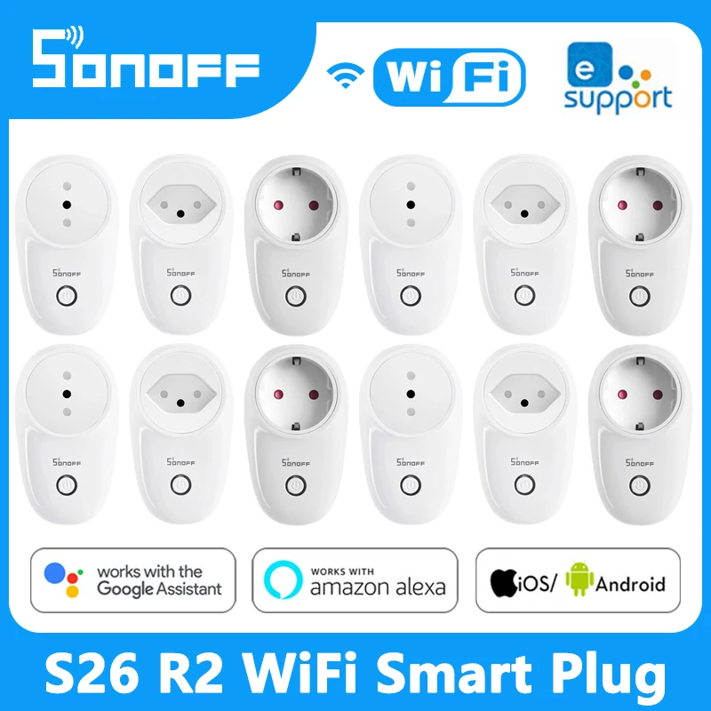 Беспроводная смарт-розетка SONOFF S26R2, Wi-Fi, клавишный переключатель, синхронизация состояния, приложение eWelink, работает с Alexa Google Home Assistant Hot