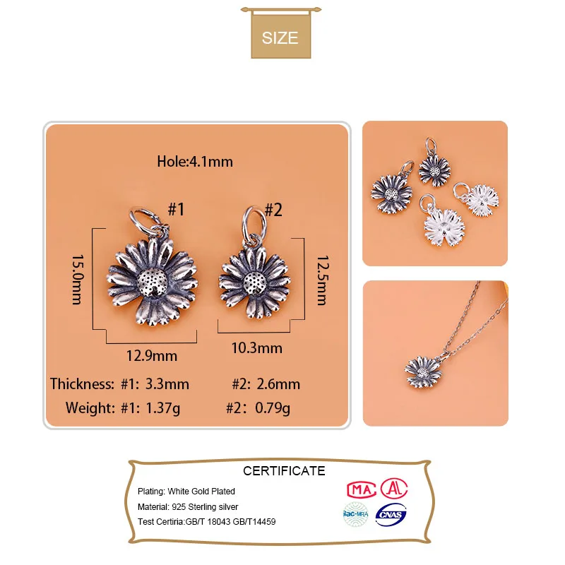 TrustDavis модные подвески из настоящего серебра 925 пробы с цветком маргаритки для браслета ожерелья DIY Аксессуары Изящные Ювелирные изделия HY016