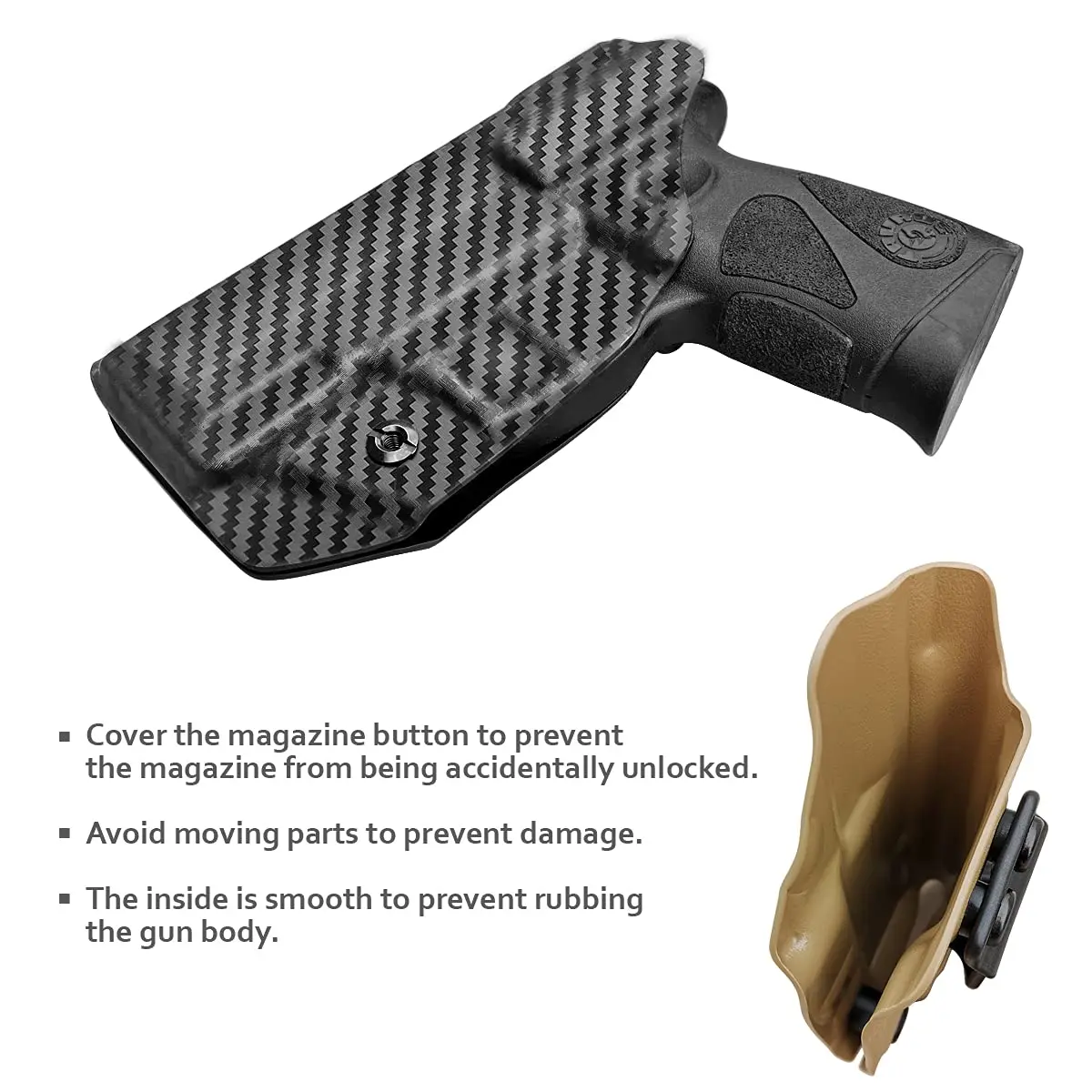 US .08 ”углеродное волокно KYDEX ручной работы: легкий, прочный, прочный, влагозащищенный и моющийся, обеспечивает комфорт и уверенность в любой ситуации. Кобура Телец G3C/кобура Телец G2C покрывает весь корпус, эффективно предотвращая пот и избегая зажимов, одежда может быть безопасно и безопасно использована.