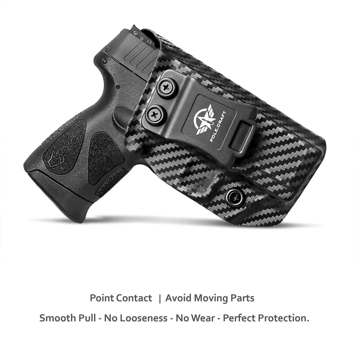 Полюс. Ремесло третьего поколения Таурус G3C Kydex кобура IWB имеет звуковую систему блокировки Posi-Click, и пистолет имеет четкий звук «щелчок» при вставке, таким образом, вы можете знать, что ваш Телец G3C/Телец G2C плотно сидит.