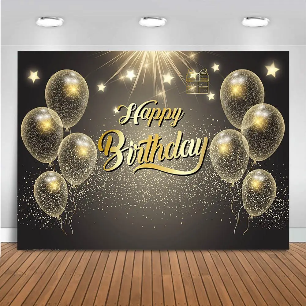 Черно-Золотой Фон для взрослых баннер на день рождения Золотой воздушный шар звезда фон 30th 40th 50th 60th 70th День Рождения Декор