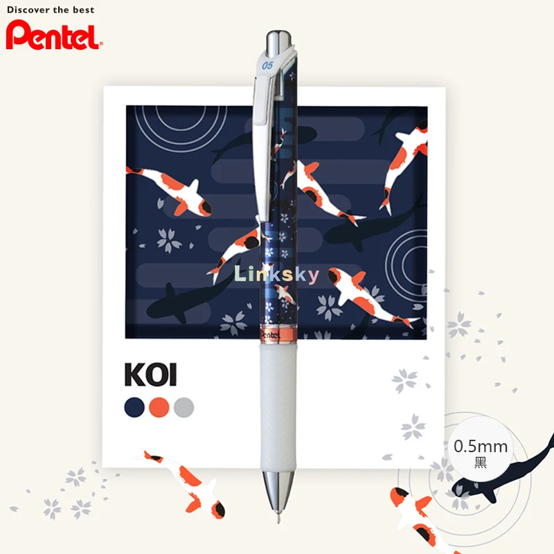 Японская полосатая быстросохнущая гелевая ручка PENTEL BLN75L 0,5 мм ENERGEL Clena BLN75L черная гладкая Заправка для письма, офисные канцелярские принадлежности