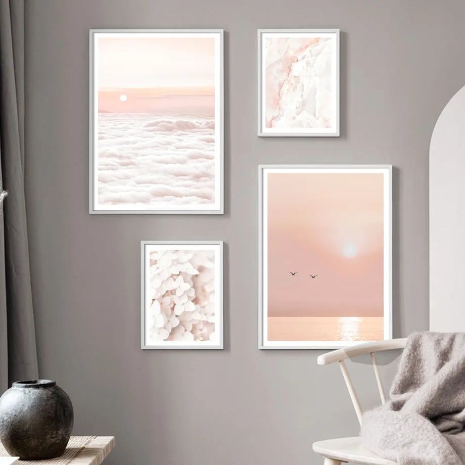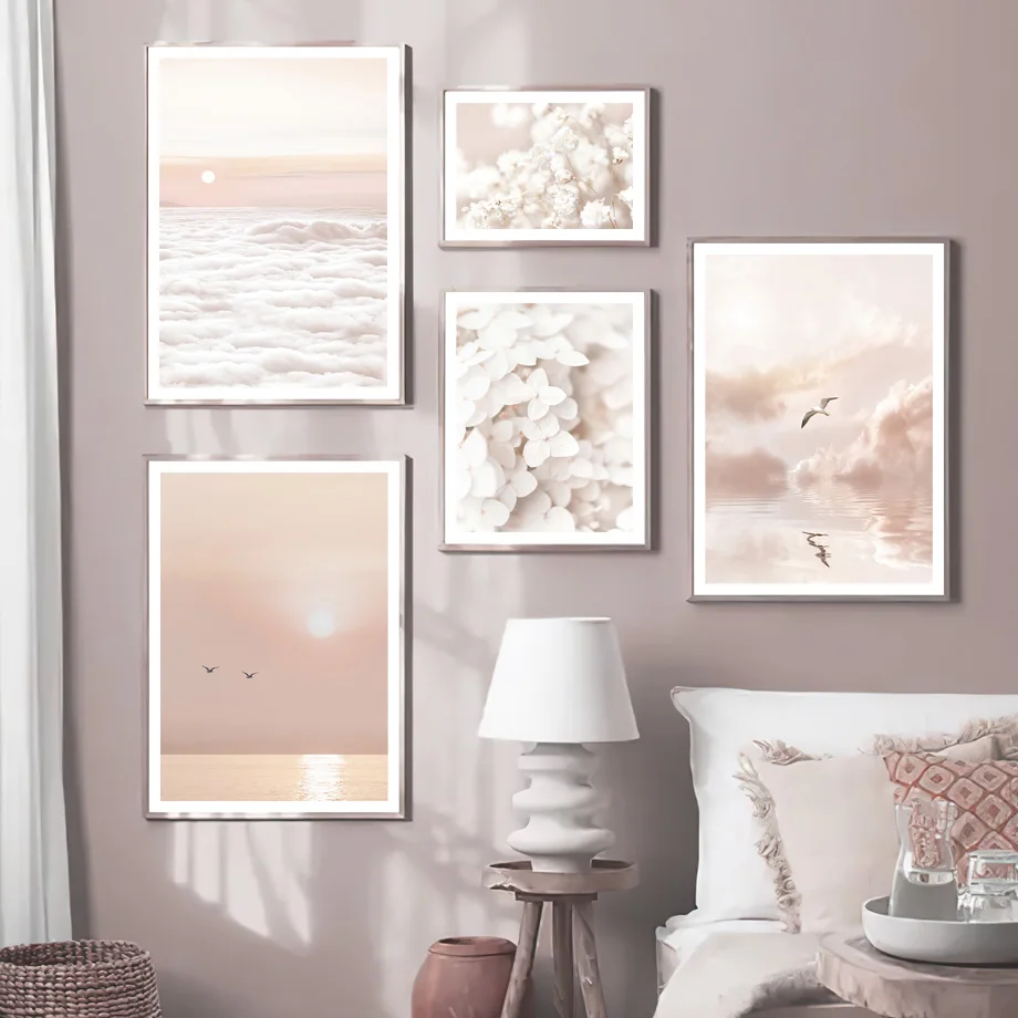 Настенные постеры с розовыми цветами, цветами вишни, розой, пионами...