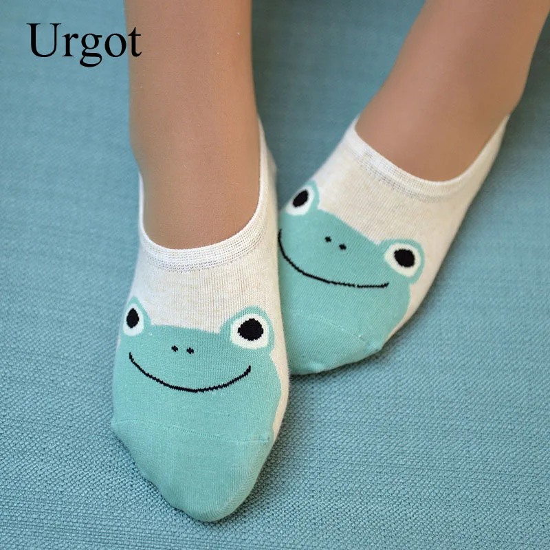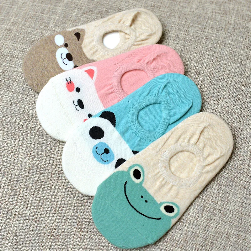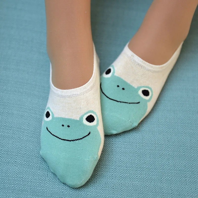 Женские летние хлопковые носки с рисунком лягушки, медведя, ярких цветов