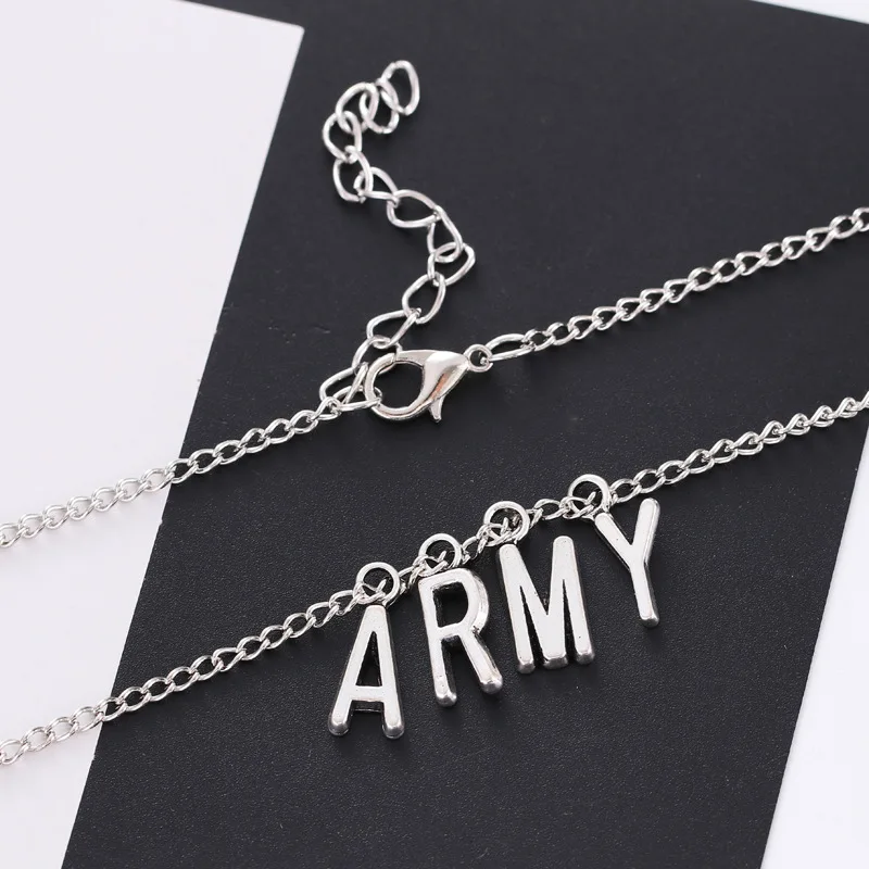 Kpop ювелирные изделия армейское ожерелье с буквами для женщин 2021 сплав буквы Bangtan Boys фанаты ожерелье модные вечерние Девушка 2021