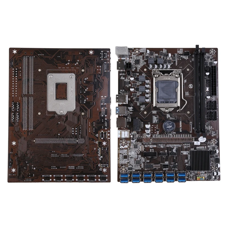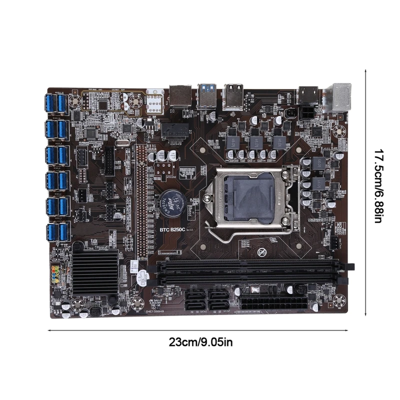 LX0B Miner материнская плата B250C BTC для ЦП набор 12 Слот для видеокарты Поддержка LGA 1151 DDR4 память SATA3.0 USB3.0 низкая мощностьОсобенности на 100% абсолютно новый и высокого качестваКомпактный и портативный: будучи таким мини и легким, этот продукт не занимает много места и может быть легко удален.Прочный материал: Этот продукт изготовлен из высококачественного материала, прочный, длительный срок службы, прочный и стабильный в использовании.Тщательная работа: тщательный дизайн, идеальное качество изготовления, долговечность и долгий срок службы.Идеальное сочетание: в соответствии с оригинальной моделью, идеальной установкой замены, высококачественными компонентами.Быстрый запуск, загрузка и передача файлов. Низкое энергопотребление, тихий, надежный и прочный.Спецификация: основной набор микросхем: Intel B250CПамять: макс. 16 ГбЦвет: черныйРазмер: прибл. 23X17.5 см/9.05x6.88inЦП разъем: LGA 1151Слот для памяти: 2 × DDR4 DIMM слот для памятиЧастота: 2133/2400 МГцИнтеграция чипа сетевой карты: RTL8111F 100M сетевая картаАудио с возможностью установки чипа: 6-канальный звуковой чипХарактеристики процессора: платформа ЦП Intel Core 6, 7-го поколения/Pentium / CeleronСлот расширения:12 × USB3.0 до PCI-E X1 графический слот2 разъема USB2.01 x USB3.0 pin1 x COM pin1x6pin квадратный порт питания4 порта SATA3.0Порт ввода/вывода:PS/2 порт клавиатуры и мыши универсальный порт 21 × сетевой порт RJ451 × HDMI-совместимый выход высокой четкости2 порта USB 3,0, 4 порта USB 2,0Аудио портРазъем питания: ATX4pin + ATX24pin 12V + ATX24 PINBIOS: AMI 64 Мб флэш-памятьПосылка включает в себя: 1 шт. х материнская плата B250C BTC MiningПримечание: возможны отклонения в 0-1 дюйм из-за ручного измерения. Спасибо за понимание.Мониторы не калибруются так же, цвет товара, отображаемый на фотографиях, может немного отличаться от фактического товара.