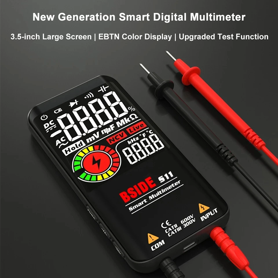 Los productos de esta serie pertenecen a la Ultima generación de multémetro inteligente de la marca BSIDE!El diseño de pantalla grande de 3,5 pulgadas deja una excelente experiencia de usuario para los compradores. El diseño fаcil de usar / con un solo botón para cambiar es bien reconocido por los compradores. El diseño de cuerpo ultradelgado es muy portatil.Proporcione cuatro productos para elegir (S7 / S9CL / S10 / S11). Aspecto exquisito / rendimiento confiable / funciones completas, puede satisfacer las necesidades de diferentes grupos de personas y es muy adecuado como regalo.S7: ЖК-дисплей pantalla;S9CL: pantalla EBTN;S10 / 11: pantalla en color EBTN.Батарея 800 мА increada S11 (admite uso recargable)