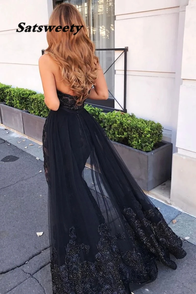 Женское кружевное вечернее платье с аппликацией, 2 предмета, платье для выпускного вечера с разрезом съемным шлейфом, вечерние атиновое вечернее платье