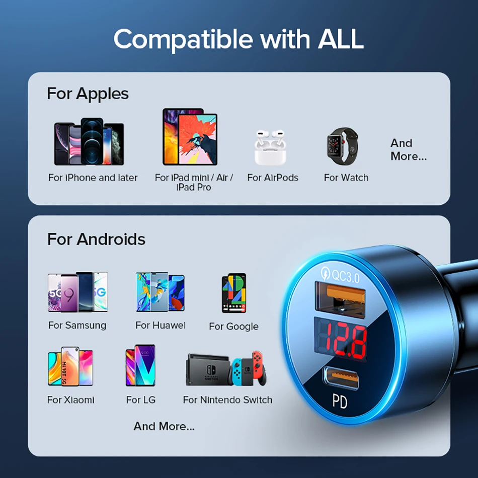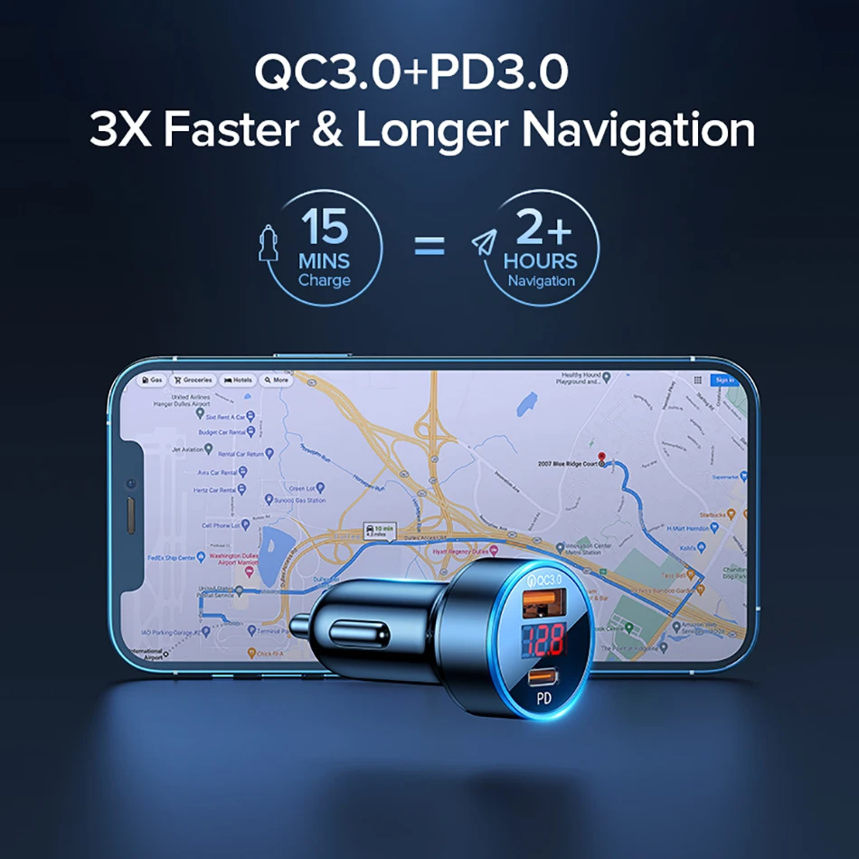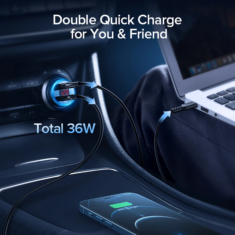 Автомобильное зарядное устройство PD, 36 Вт, два порта, QC 3,0, светодиодный цифровой дисплей, адаптер для быстрой зарядки телефона для iPhone 12 Pro Max, Xiaomi 11, Samsung S20