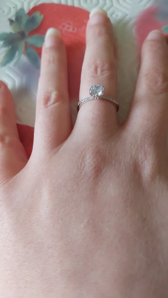 Кольцо красивое и очень хорошее. Она хорошо сияет. Бренд S925 выгравирован на нем, поэтому это настоящее серебро. Выглядит хорошо, но кажется немного хрупким из-за его изящества. Доставлено быстро в коробке. Я рекомендую это.