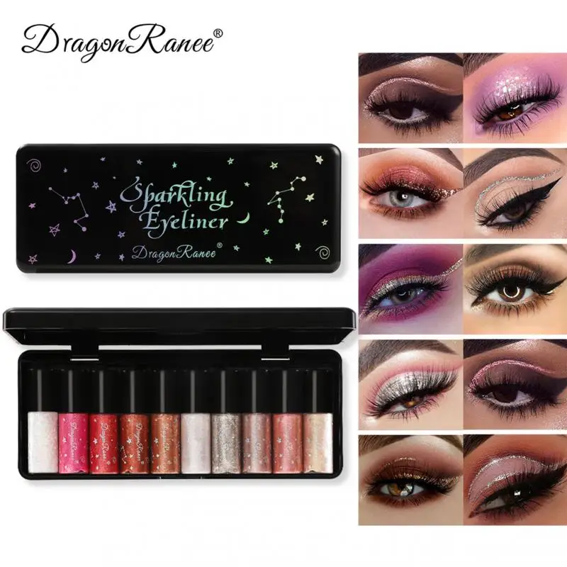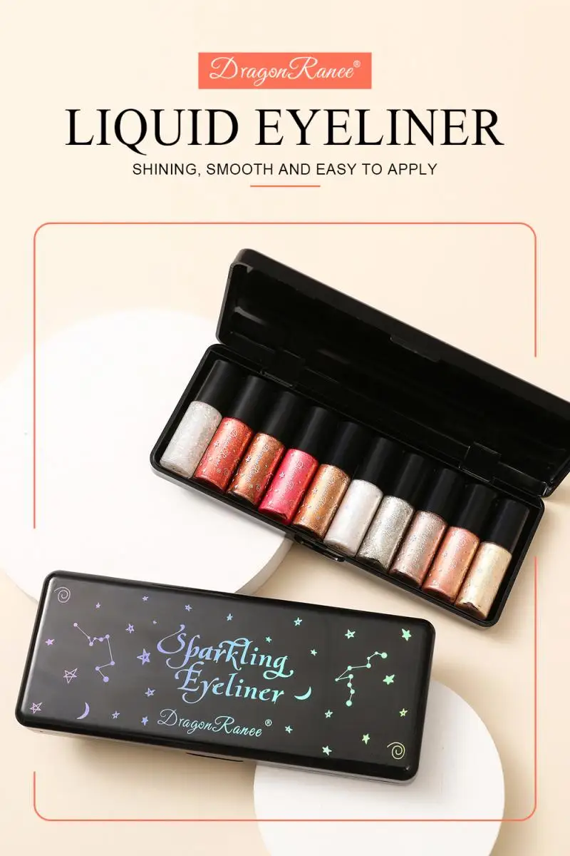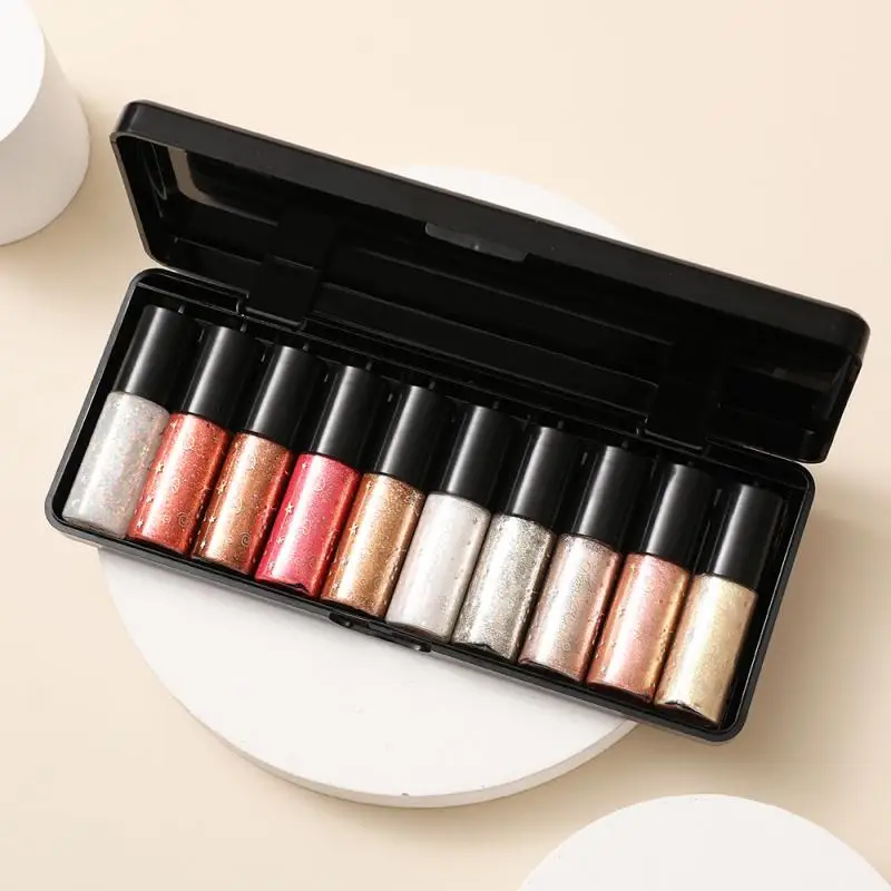 Черная жидкая подводка для глаз, зеркальная Бриллиантовая фотоподводка, Перламутровые тени для глаз, цветопередача TSLM2, 10 цветов