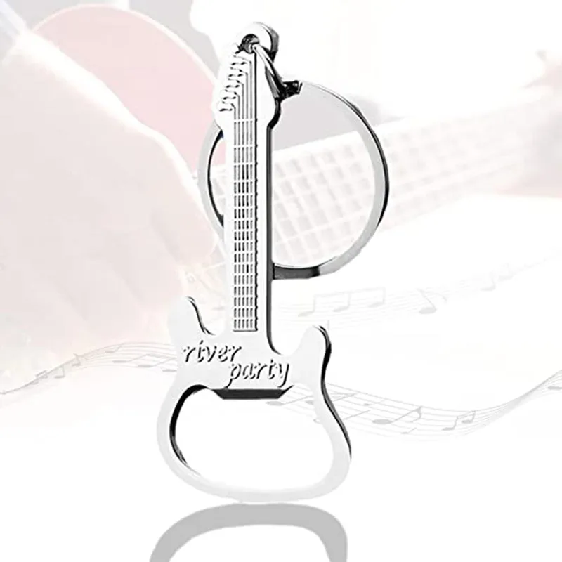 Он изготовлен из сплава цинка, который является прочным, коррозионно-стойким и не легко деформируется. Креативный дизайн в форме гитары, удобный открывалка для бутылок, с кольцом для ключей, маленькие предметы легко носить с собой и могут использоваться в любое время.