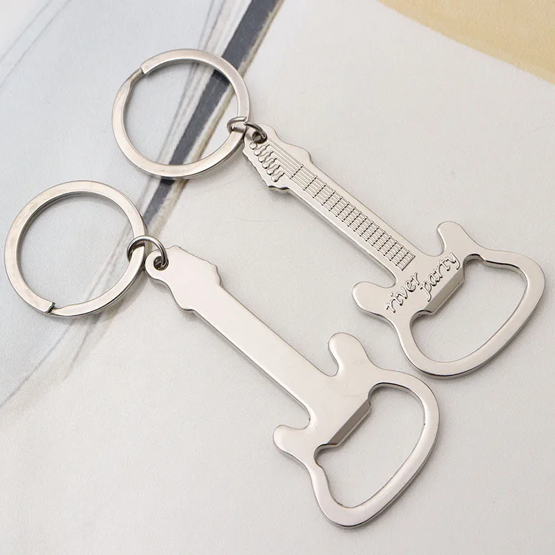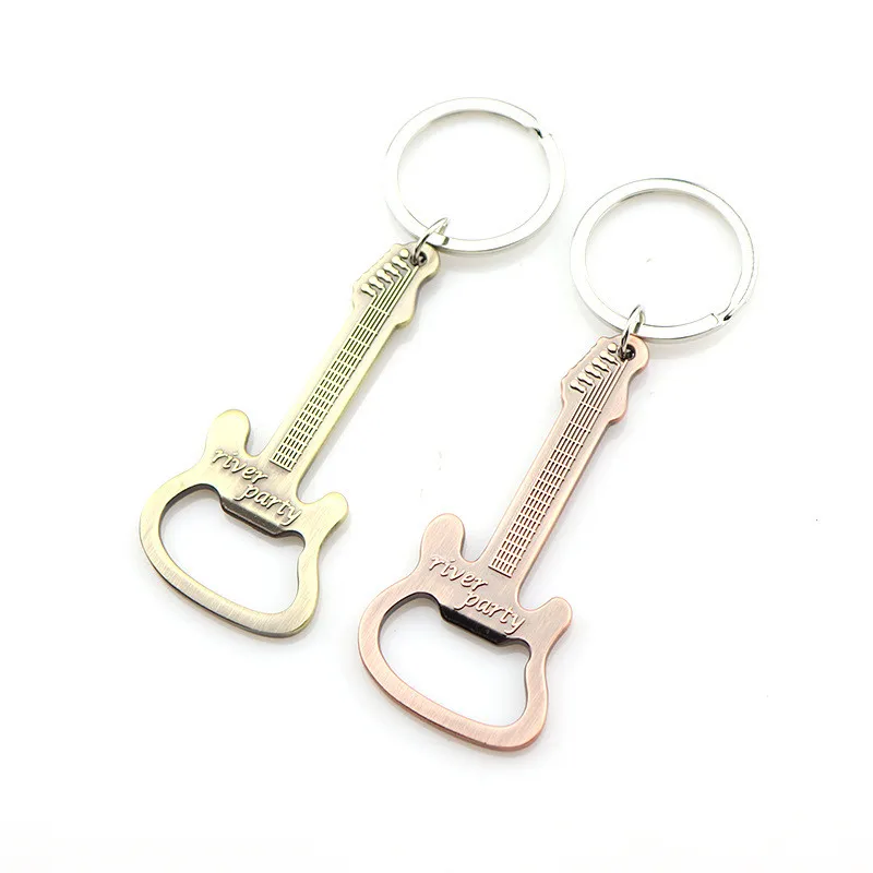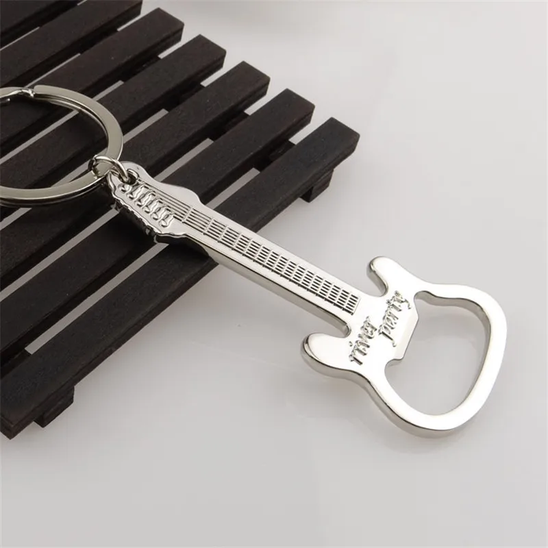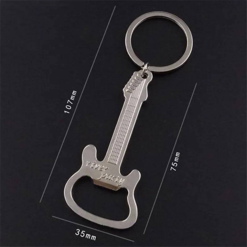Открывалка для бутылок, брелок для творчества, форма гитары, цинковый сплав, медь, серебро, подвесное кольцо, брелок для бара, инструмент, штопор, подарок, консервный нож
