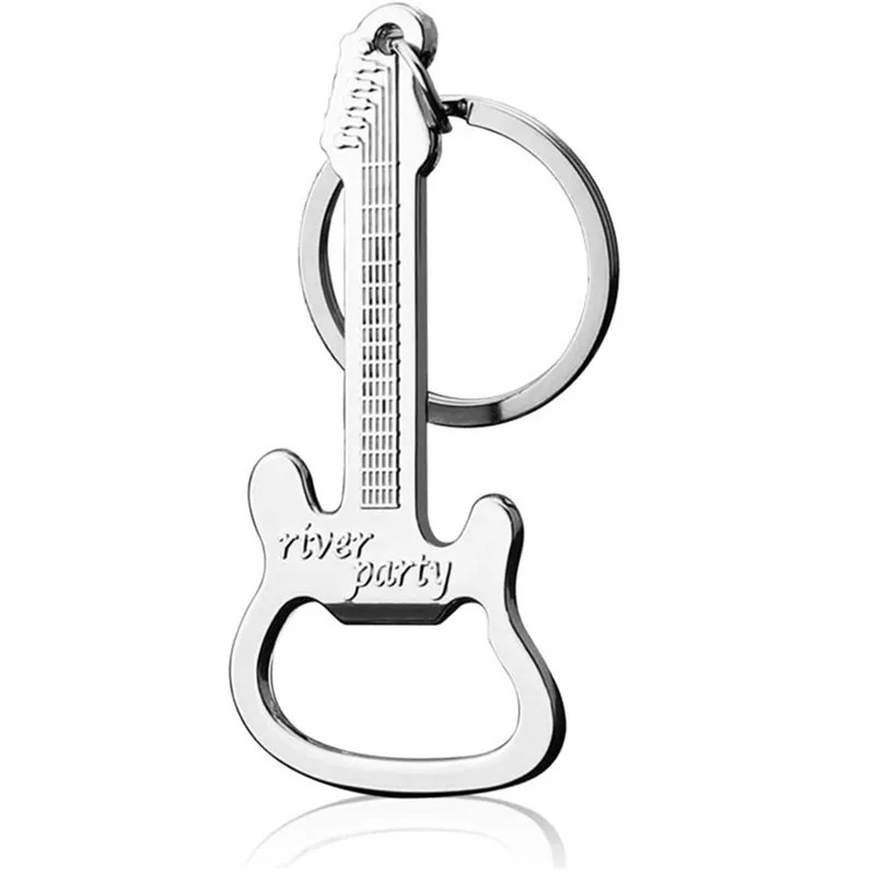 Открывалка для бутылок, брелок, Креатив, в форме гитары, цинковый сплав, медь, серебро, подвесное кольцо, брелок, барный инструмент, штопор, подарок, открывалка для банок