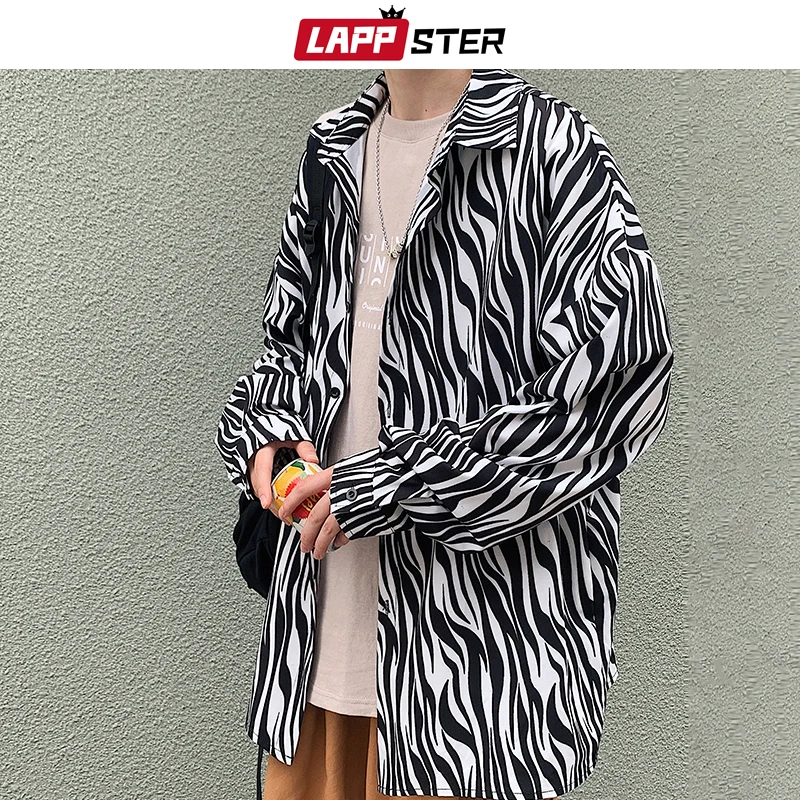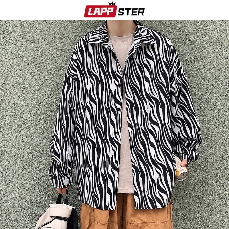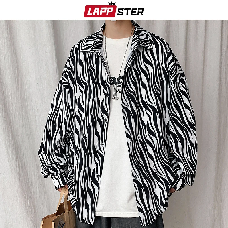 Рубашка LAPPSTER мужская с леопардовым принтом, Повседневная Уличная одежда в стиле Харадзюку, с длинным рукавом, на пуговицах, с принтом Тай-дай, винтажная черная, 2022