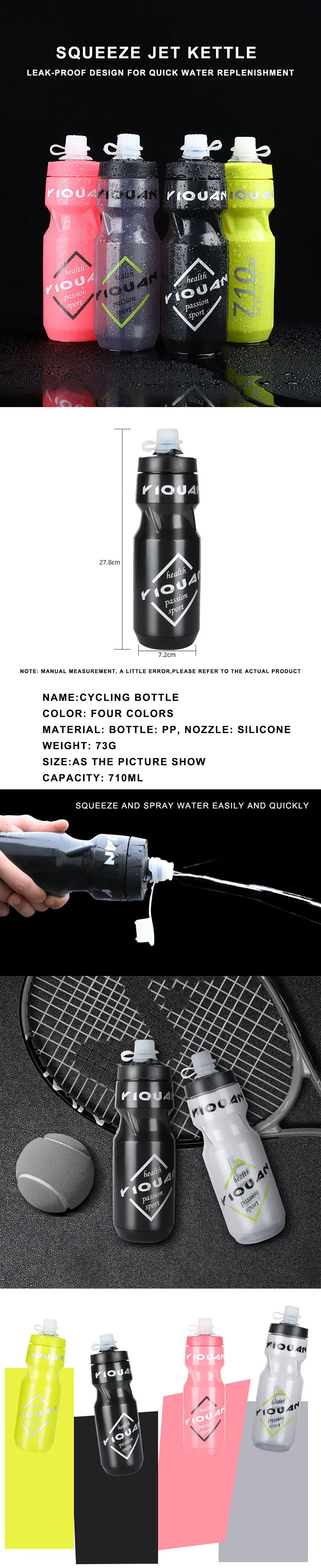 Герметичная велосипедная бутылка для воды 710 мл, Сжимаемый распыли...