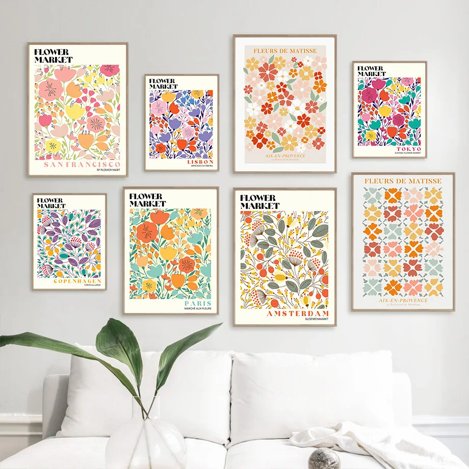 Настенная картина с изображением ярких цветов на рынке растений, настенные картины на холсте в скандинавском стиле, постеры и принты, абстрактные настенные картины для декора гостиной