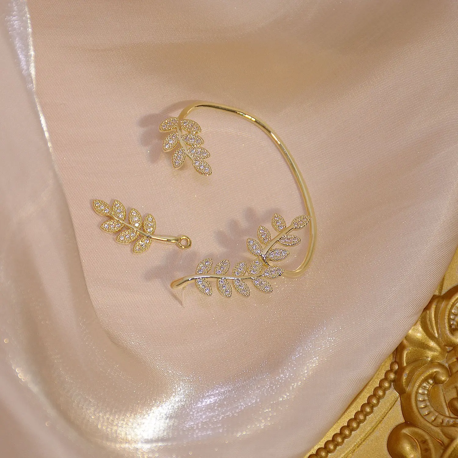 14k, покрыто настоящим золотом, S925 наборе серебристых спиц, можно носить с обеих сторон лист инкрустированные алмазами циркония изысканный один серьги Уникальный Стиль женские ювелирные изделия