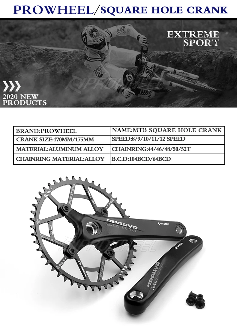 Коленчатый механизм PROWHEEL MTB 104BCD с квадратным отверстием 170 мм175 мм 303234363840424446485052T, цепные кольца, звездочка, коленчатый механизм для велосипеда