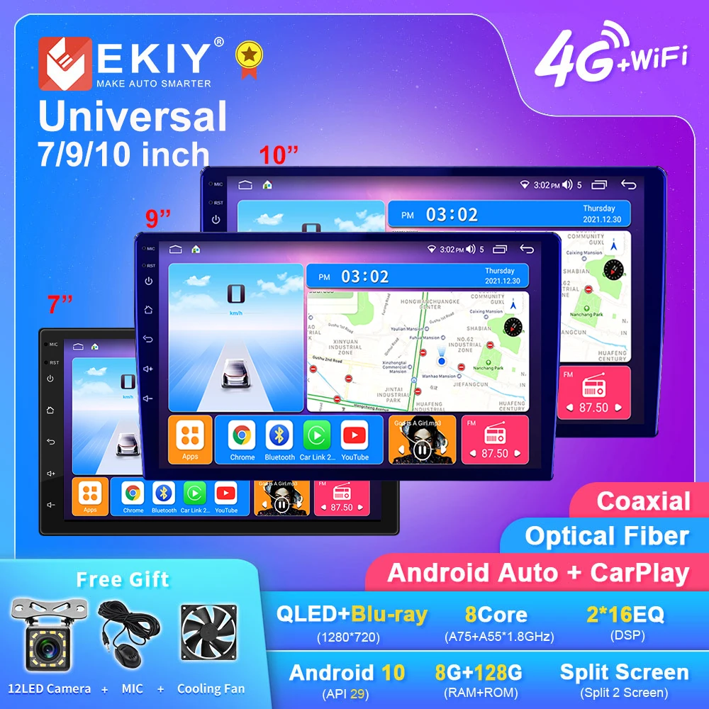 Автомагнитола EKIY Carplay на Android 10, мультимедийный видеоплеер...