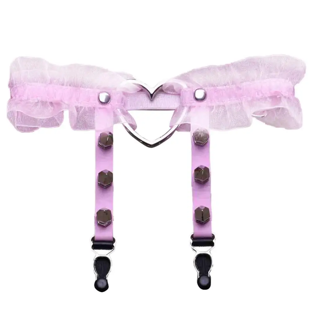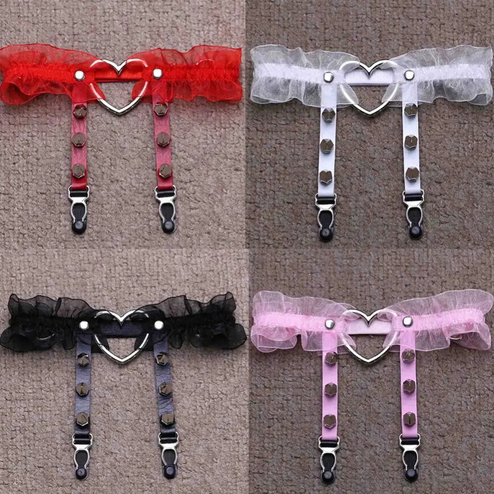 Новинка, мода, 1 шт., великолепный Женский пояс для чулок в стиле панк, готика, в форме сердца, с шипами, эластичный кружевной пояс для чулок, ремень с искусственными цветами