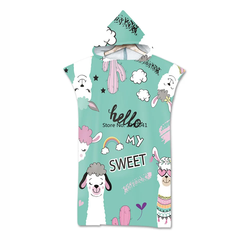 Быстросохнущее банное полотенце из микрофибры Outdooor, пончо с капюшоном и принтом Альпака для серфинга, сменный халат, банный халат, плащ, полотенце, мягкая пляжная одежда