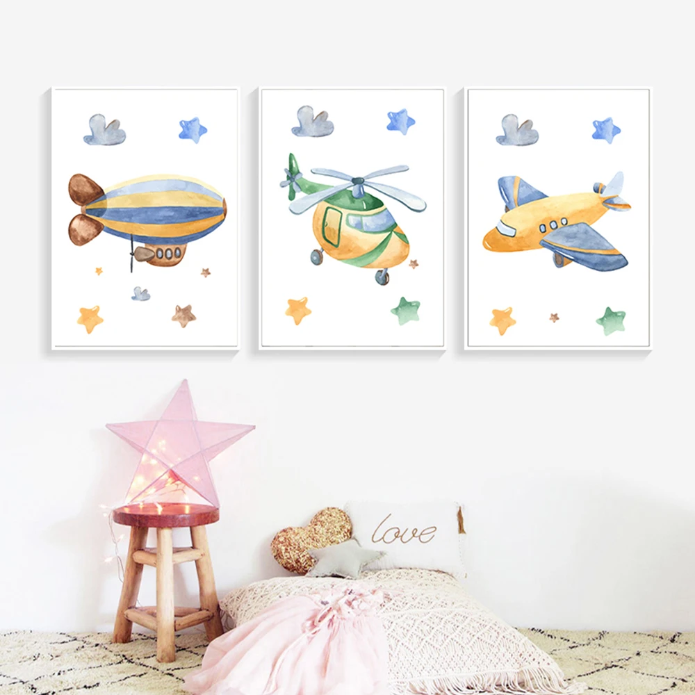 Детский постер с вертолетом, холст, картина, настенные картины, мул...