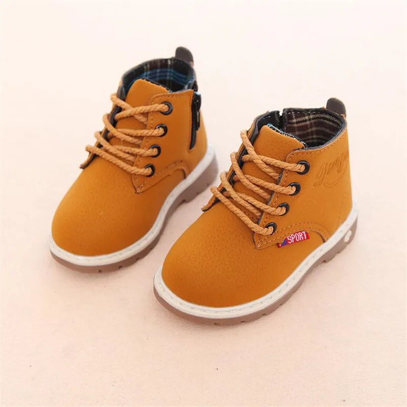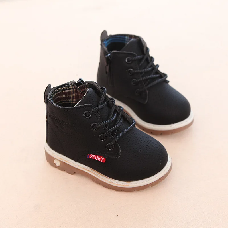 Детская повседневная обувь, Осень-зима, Ботинки Martin, модная кожаная обувь для мальчиков, мягкие Нескользящие ботинки для девочек 21-30, спортивная обувь для бега