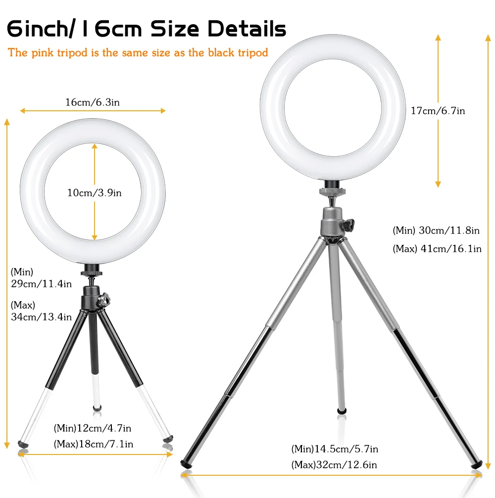 Кольцевая Светодиодная лампа для селфи 16 см 6 дюймов с подставкой