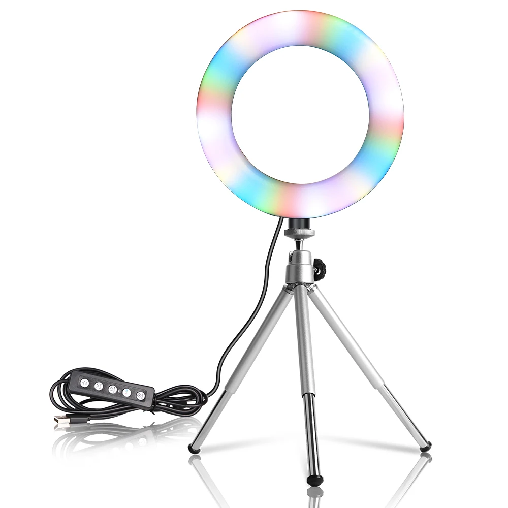 1x6 дюймов RGB светодиодный кольцевой светильник (USB разъем)1x серебряный Штатив