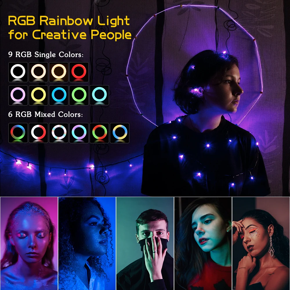 Features 56 inch RGB Ring Light Usb Charge Selfie Led Video Lamp