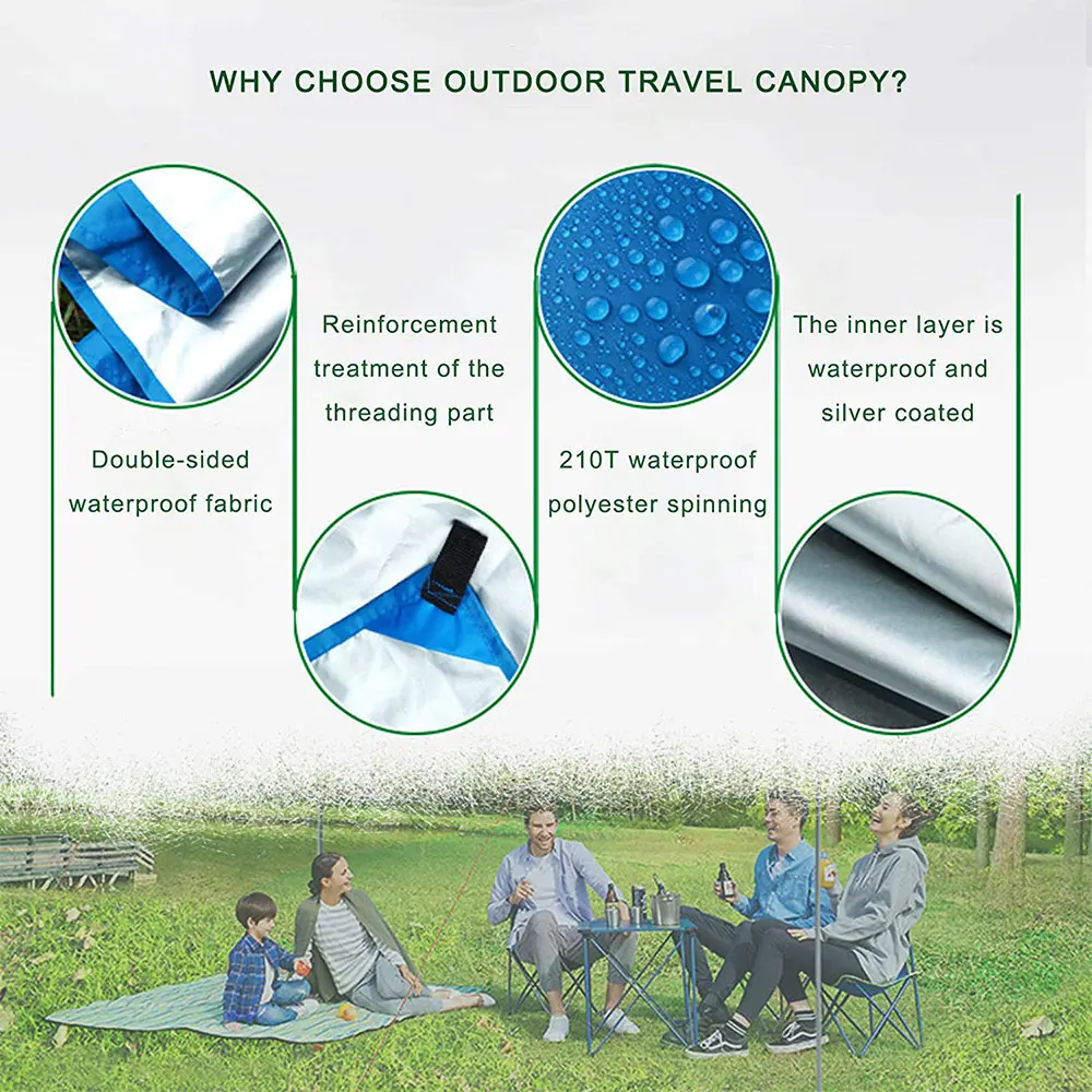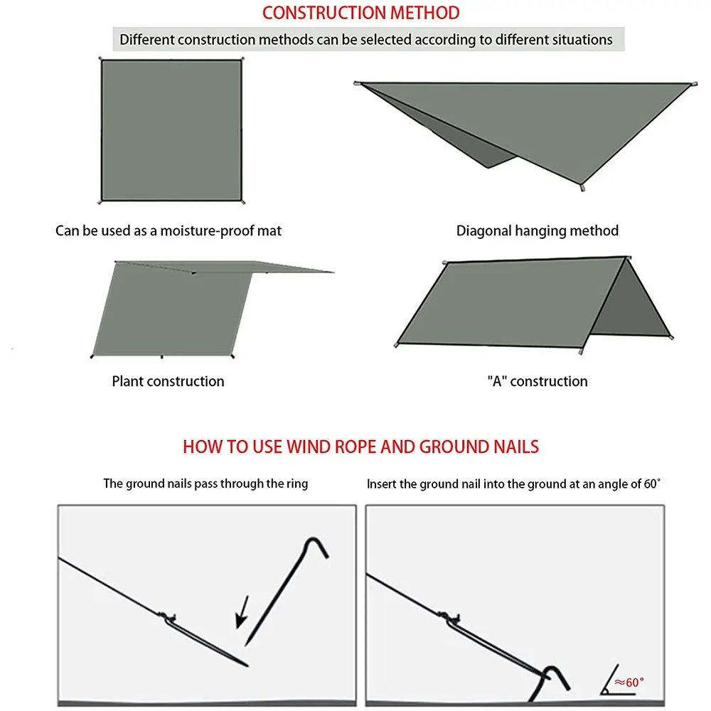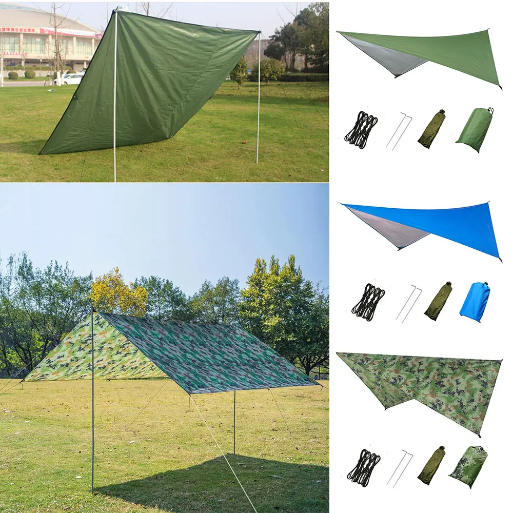 Список деталей: Кемпинг Брезент 4Ветряная веревка 2Наземный гвоздь 1Сумка для аксессуаров 1Сумка для хранения 1 Описание подсветки: 1. Палатка для кемпинга изготовлена из водонепроницаемой полиэфирной ткани с водонепроницаемостью 1500 мм.2. Он может обеспечить превосходное анти-ультрафиолетовое затенение, что делает вас чувствовать себя в безопасности и защищенным в любых погодных условиях.3. Оснащен сумкой на шнурке, которая удобна для переноски, когда не используется.4. Может использоваться в качестве гамака для тента, тента на солнце, брезента для дождя, одеяла для пикника, пляжного одеяла, влагостойкой прокладки.5. Кемпинг Брезент может быть легко установлен в течение нескольких минут, и он прост в установке. Подробное описание: Материал:Водонепроницаемая полиэфирная ткань Цвет (опционально):Зеленый, синий, камуфляж Размер:230x210 см (диагональ 310x310 см) Примечания:1. Из-за разницы между различными мониторами изображение может не отражать фактический цвет изделия.2. Возможны незначительные отклонения в размерах из-за различных измерений вручную. Спасибо за понимание.