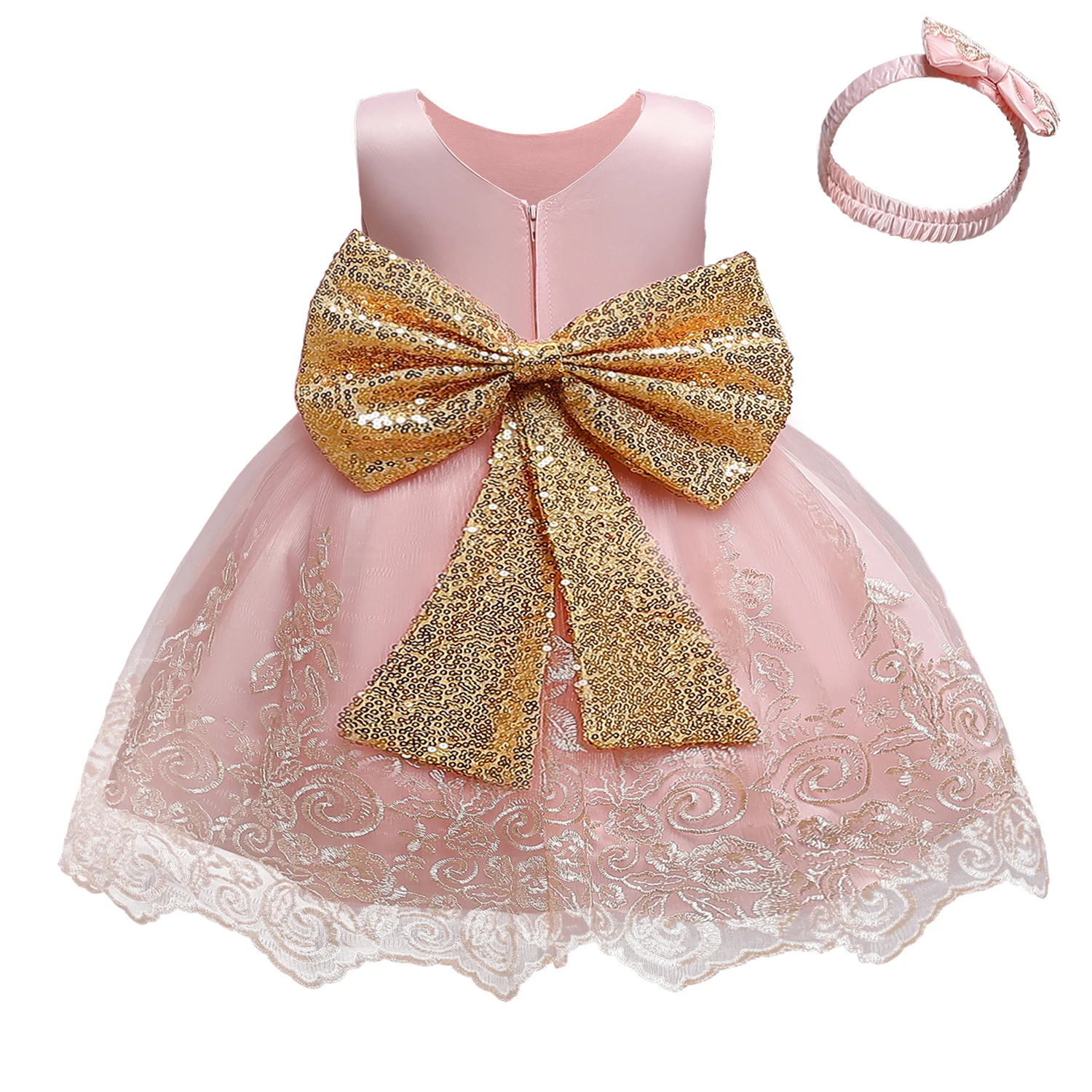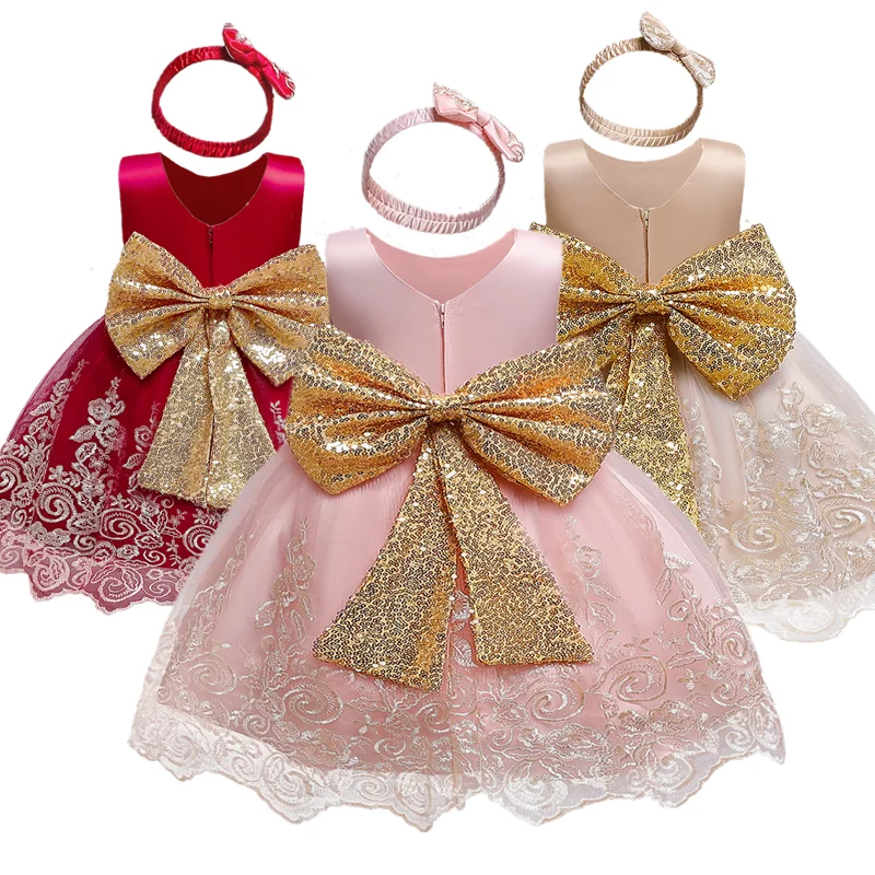 Платье с открытой спиной и бантом для новорожденных девочек 1 год