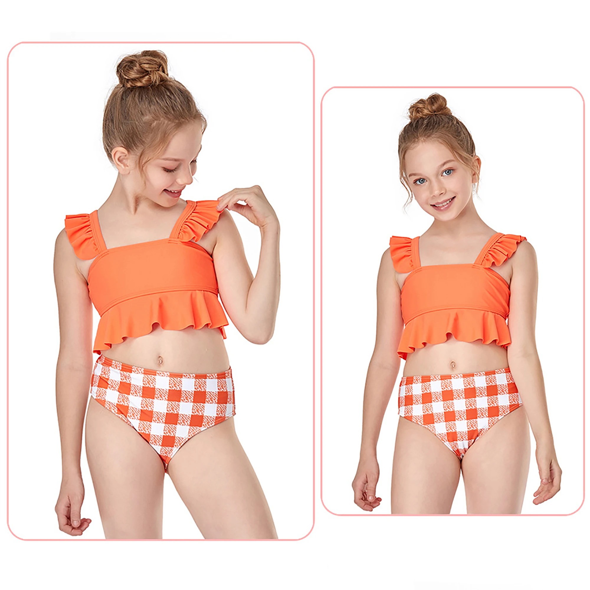 Клетчатый Купальник для девочек, купальник из двух частей, Детская ...