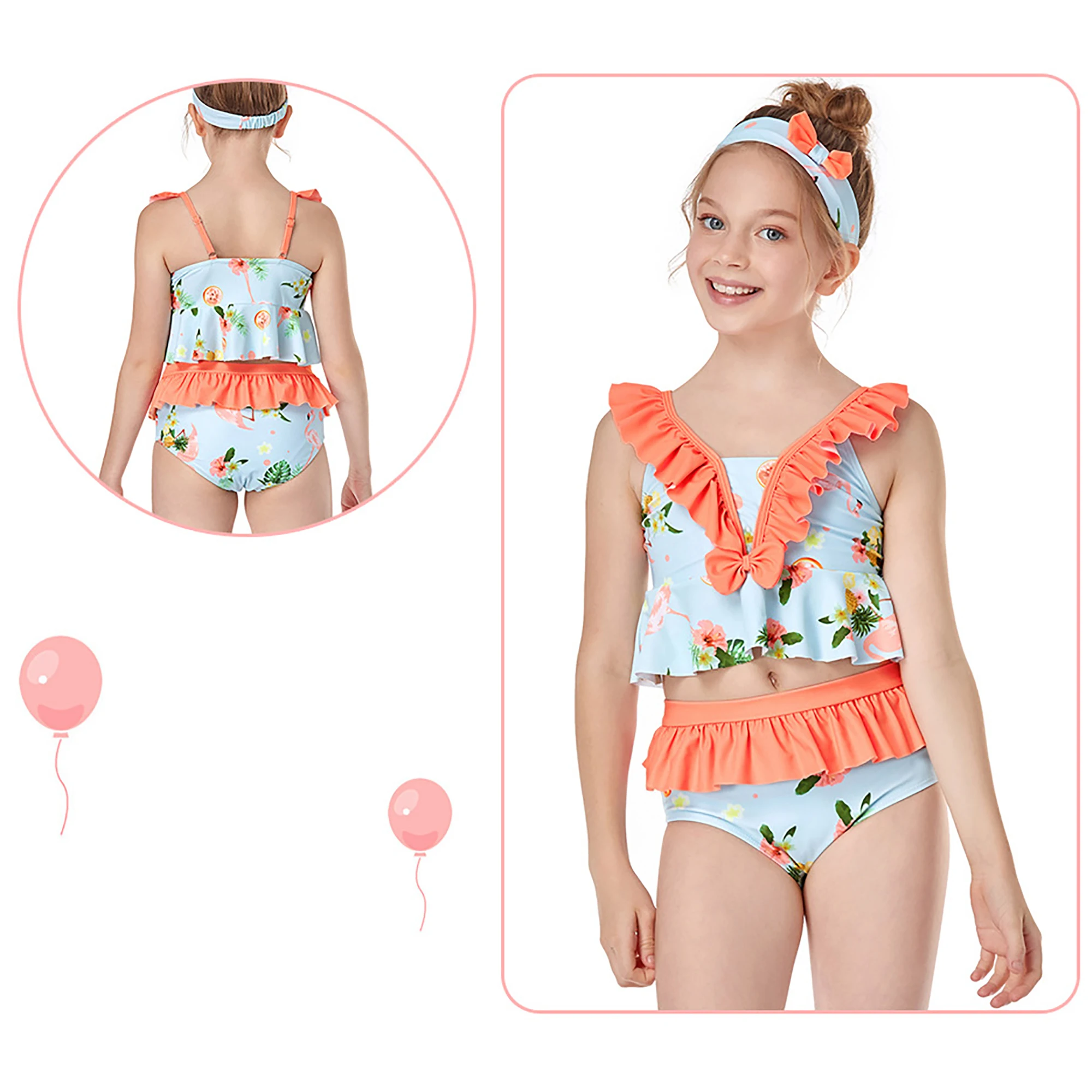 Летние Купальники с рюшами для девочек; 2 предмета; Детский купальн...