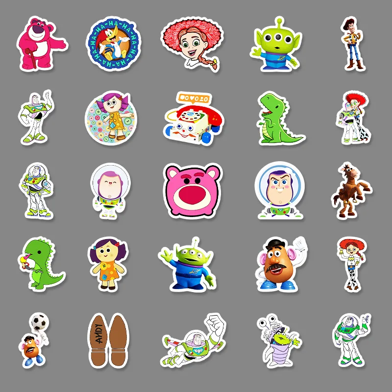 53 шт История игрушек, Disney Стикеры эстетические Чемодан холодильник пианино гитары не повторяя стиле граффити из мультфильма; Стикеры s