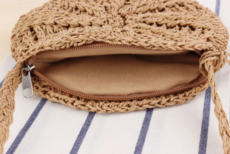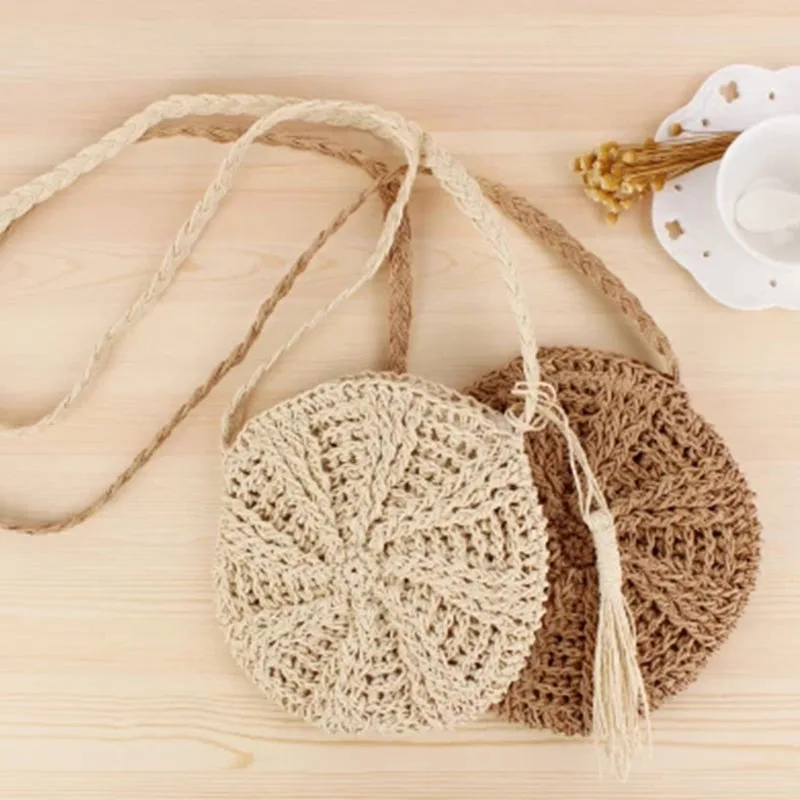 Трехместный ротанговый Плетеный Круглый Женская Плетеная соломенная сумка вязать Летняя Пляжная сумка женская сумка с кисточками, хаки, бежевый, сумки через плечо