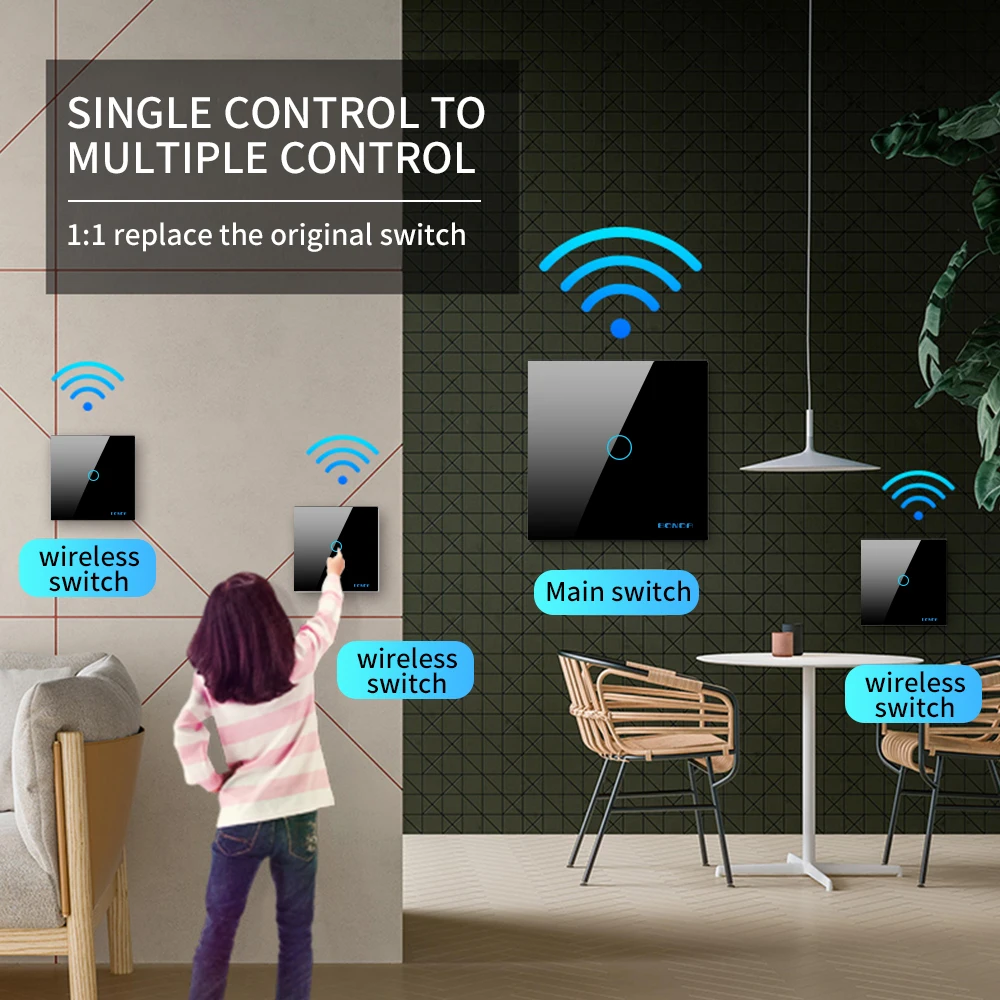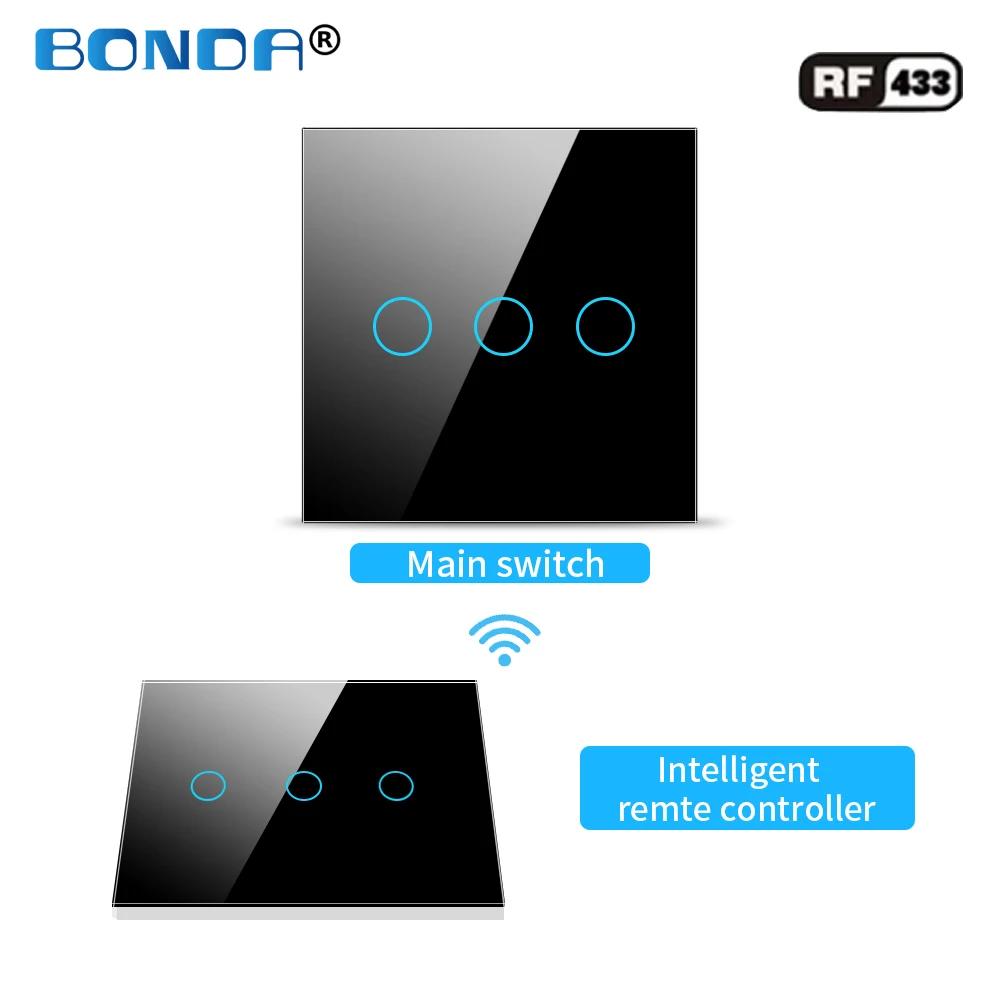 Беспроводной настенный выключатель RF433 с дистанционным управлением, панель из хрустального стекла, сенсорный выключатель для лампы, ВКЛ.ВЫКЛ., стандарт ЕС, умный дом, 110 В, 220 В
