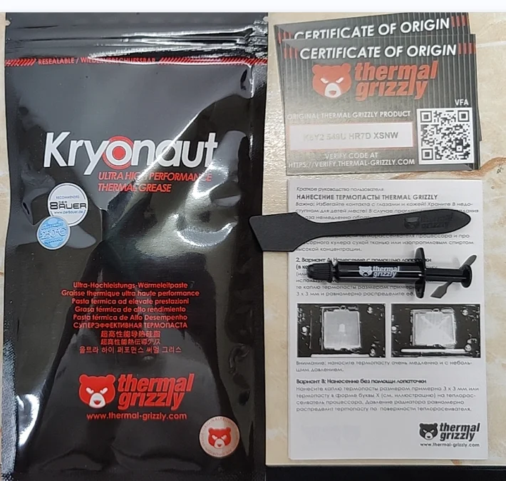 Термопаста для процессора Grizzly Kryonaut, 1 г, для процессора AMD...