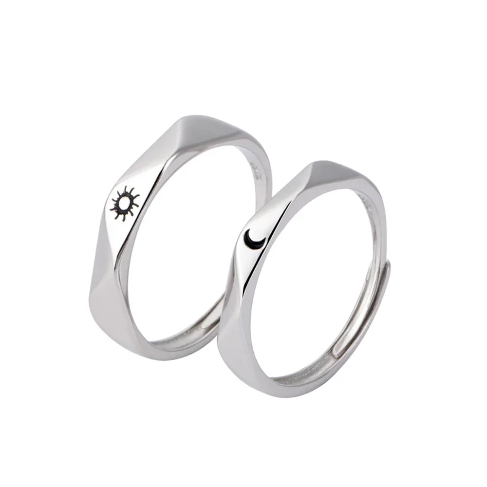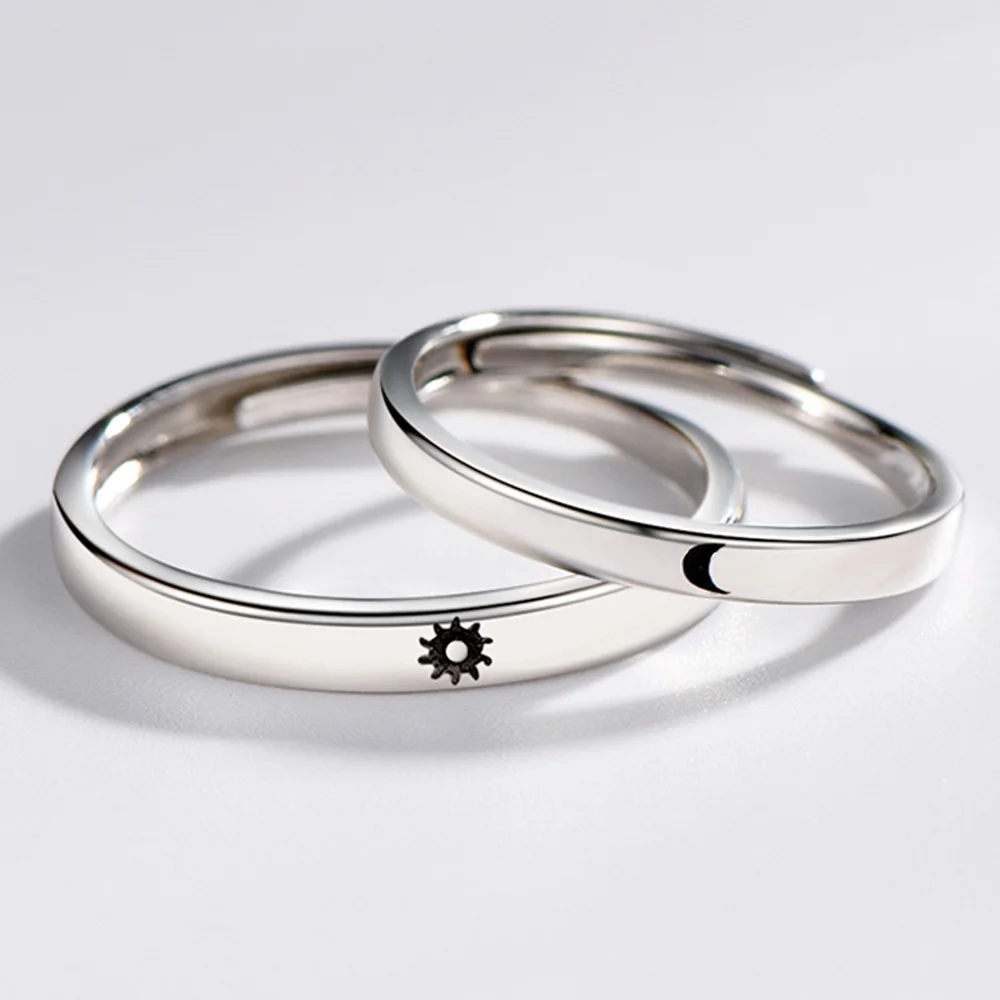 Модное простое кольцо с открытым солнцем и луной, простое серебряное регулируемое мужское обручальное ювелирное изделие для пары