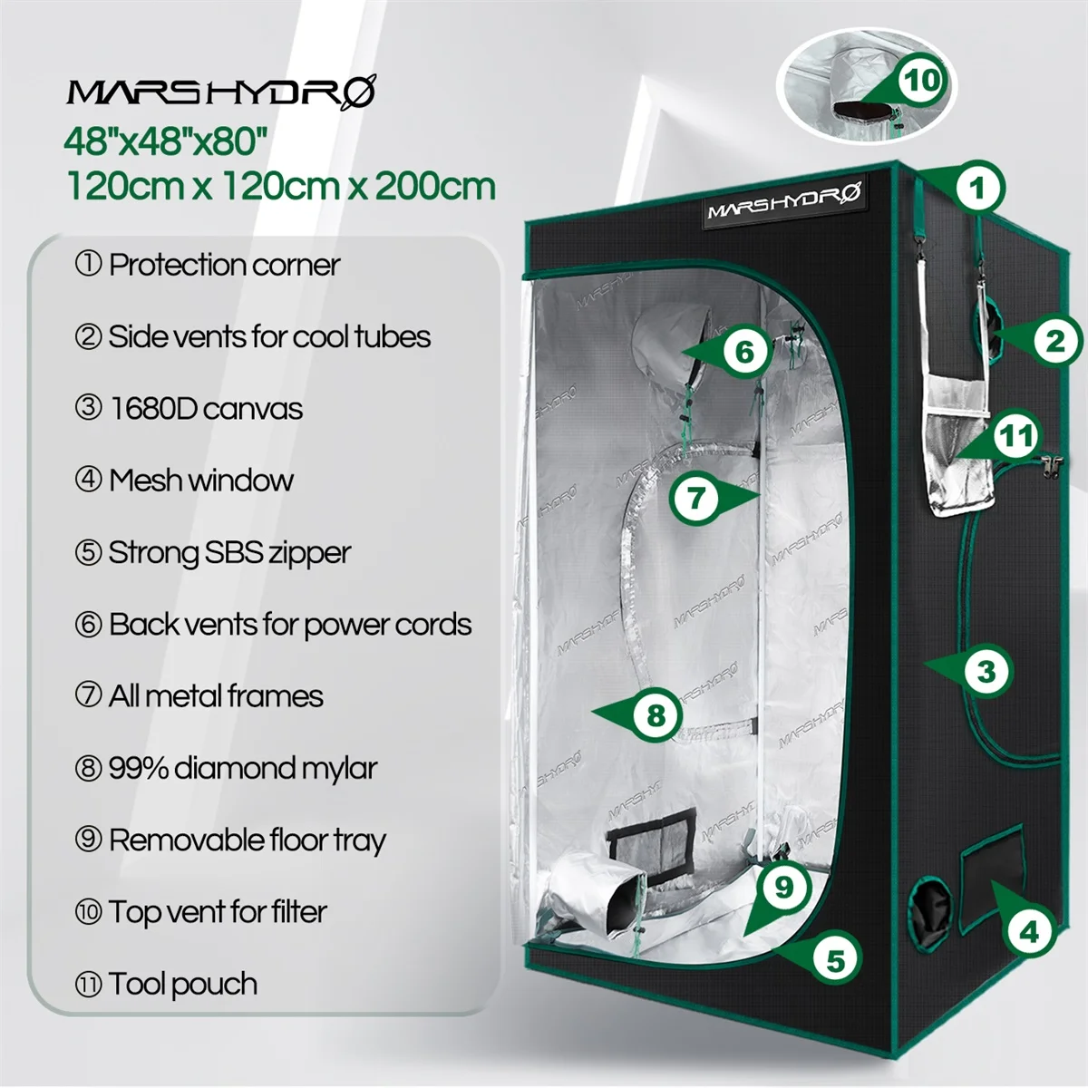 Набор для выращивания растений Mars Hydro TSW, 2000 Вт, 120x120x200 см, полный спектр, квантовая лампа для системы гидропоники