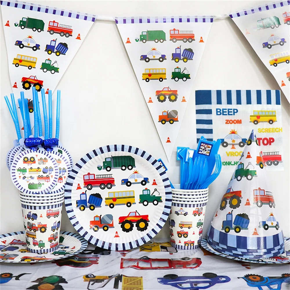 Тематические одноразовые столовые приборы с инженерным автомобилем, детские праздничные атрибуты, автомобильное украшение для дня рождения девочки, Детская подставка для торта