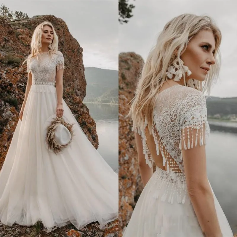 Кружевные свадебные платья 2021 пляжное индивидуальный заказ кружевное пляжное богемное ТРАПЕЦИЕВИДНОЕ Тюлевое платье развертки Поезд тюлевые свадебные платья в богемном стиле свадебное платье