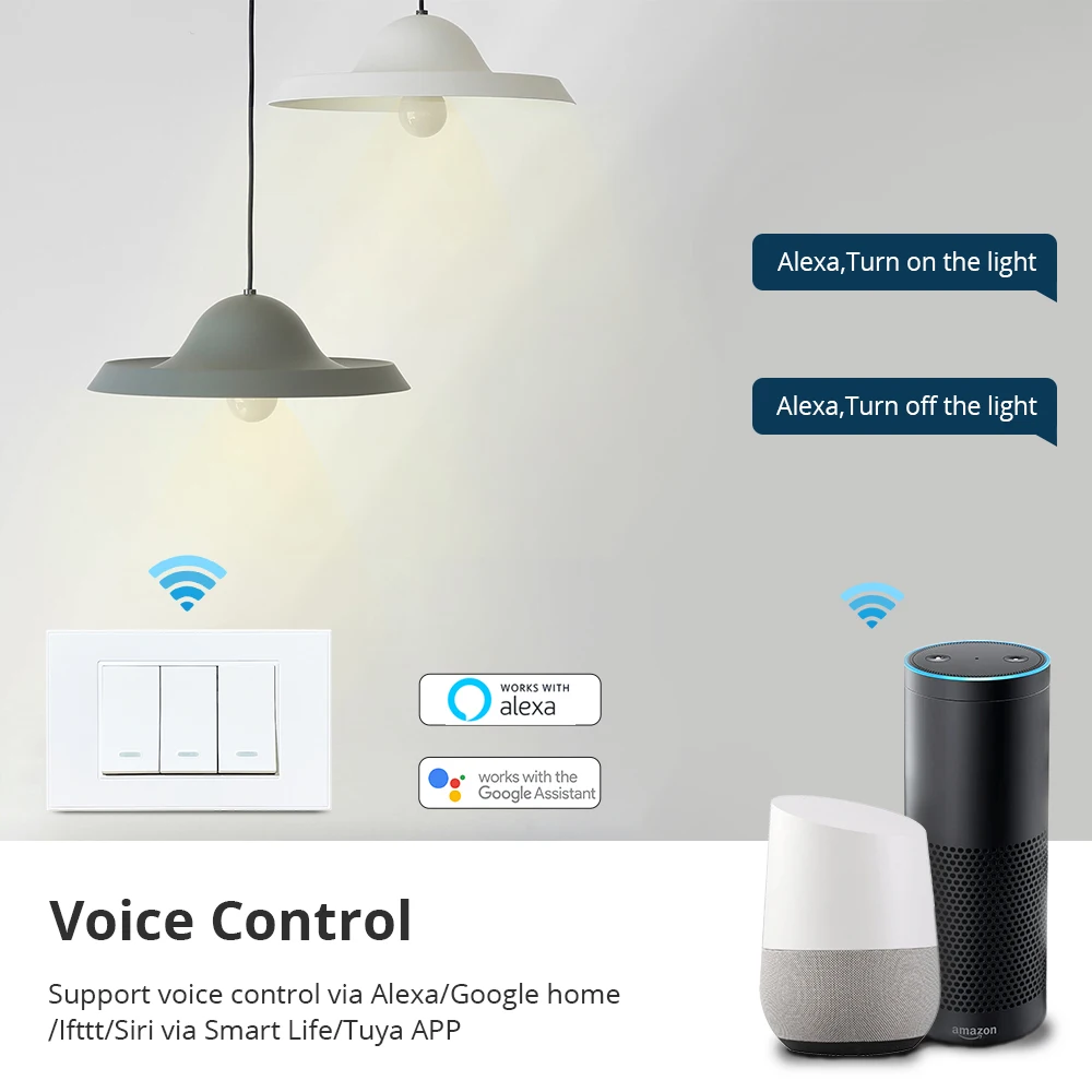 -Дистанционное управление через приложение. Управляйте устройствами в любое время и в любом месте с помощью приложения Smart Life.-Управление таймером: предварительно установите несколько рабочих расписаний. Вы можете запланировать его включение и выключение светильник автоматически. Дополнительное преимущество экономии энергии, когда светильник s не нужен или не включен случайно.-Голосовое управление: умный настенный светильник совместим с Amazon Alexa, Google Home, просто используйте голосовую команду, чтобы включить или выключить светильник.-Физическая кнопка: роскошный дизайн высокого класса с большой физической кнопкой для управления нажатием.-Светодиодный индикатор. Когда свет выключен, светодиодный индикатор поможет вам легко найти переключатель.