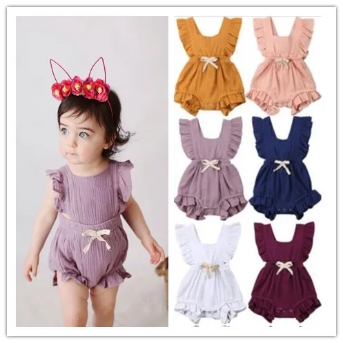 Летний комбинезон для маленьких девочек, однотонный комбинезон с оборками, наряды, костюм от солнца для новорожденных, одежда для маленьких девочек, одежда для малышей